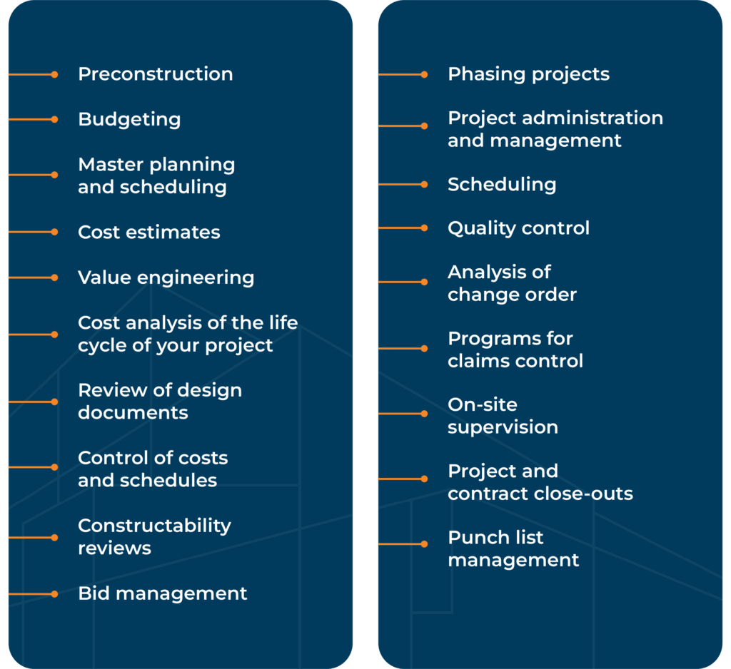 This fee-based service provides clients with an objective advocate for their construction projects. As an Agency Construction Management (ACM) service, we will keep your interests at the forefront from the initial concept to the final closeout to ensure we meet your needs throughout the project.