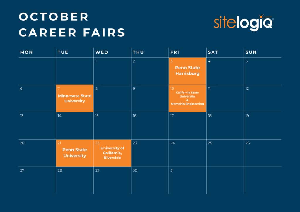 SitelogIQ’s team is set to attend career fairs across the U.S. this fall. Below is a comprehensive list of where we’ll be – make sure to stop by or apply online today.