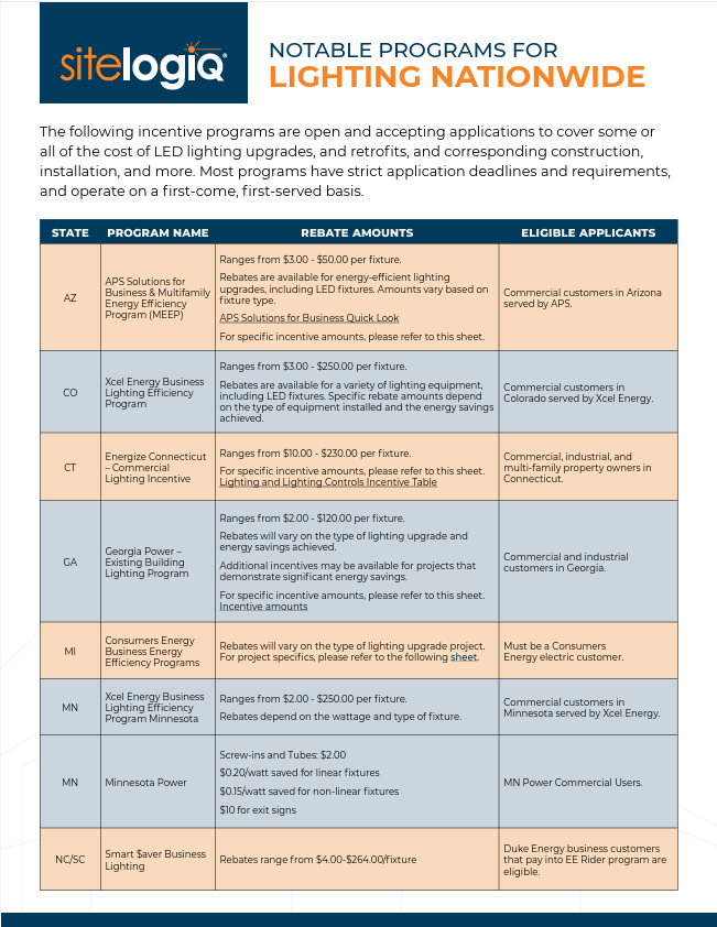 Incentive programs exist across the U.S. that cover some or all of the costs associated with commercial LED lighting upgrades and retrofits. See what’s available in your state or utility territory.